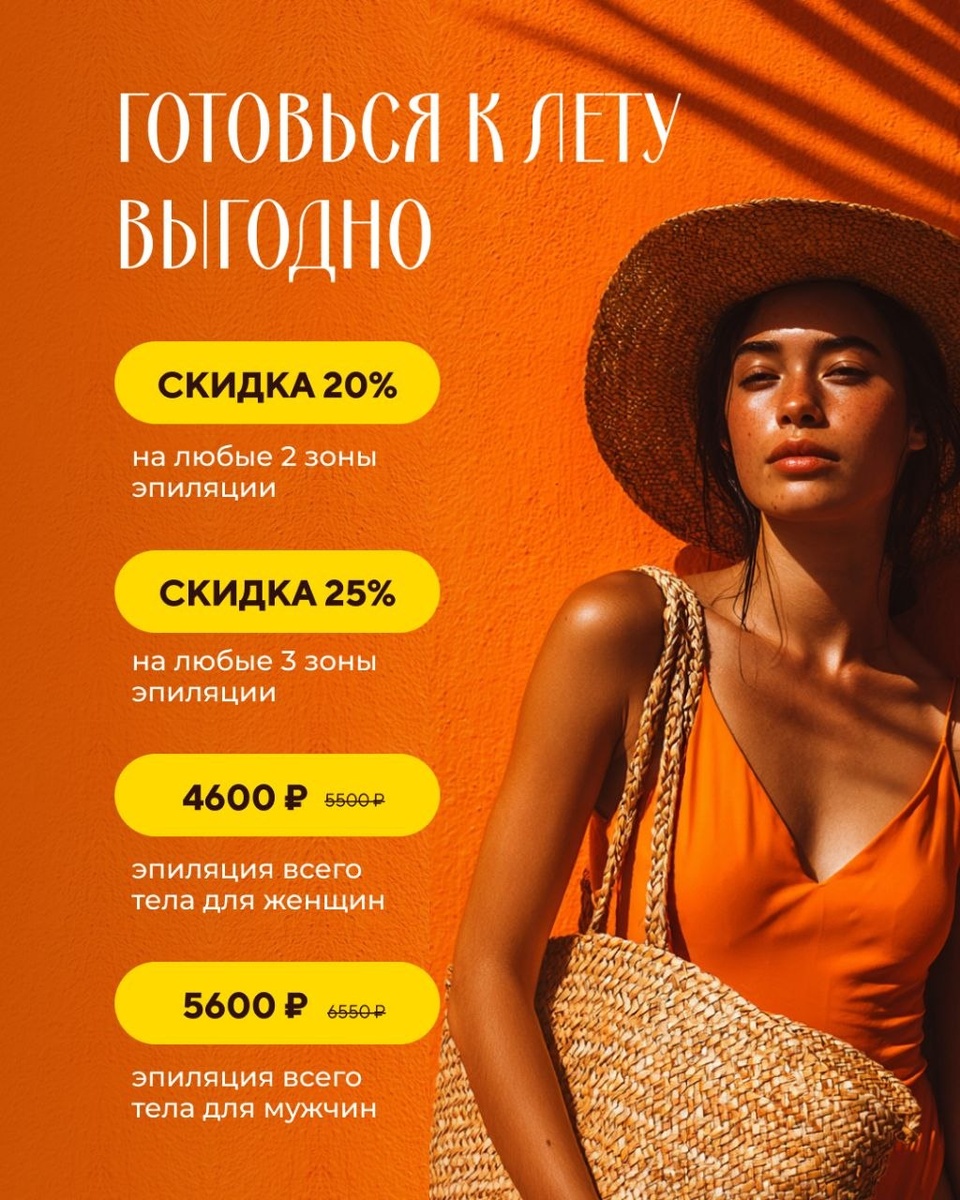 » 🔥 Не упустите выгодные предложения для красоты и ухода! 1⃣ «Готовьтесь к лету выгодно» — главная акция месяца! • любые 2 зоны → скидка 20 % • любые 3 зоны → скидка 25 % • все тело: - для НЕЕ → 4600₽ вместо 5500₽ - для НЕГО → 5600₽ вместо 6550₽ • для всех клиентов салона 2⃣ «Апрель = выгодный старт» • первая процедура любой зоны → всего за 500 ₽ • бонус: при записи в день визита → дополнительная скидка 10% на ВЕСЬ КУРС 👉 Специально для НОВЫХ клиентов! 3⃣ «Приведи подругу» • приводите подругу → и обе получите скидку 20 % на процедуру • для всех клиентов салона 4⃣ «Счастливые часы 2.0» • с 8:00 до 10:00 → скидка 10 % • с 14:00 до 16:00 → скидка 15 % • для всех клиентов салона 5⃣ «Апрель без переплат» • Приобретайте абонемент на любую сумму и разделите оплату на 2–3 платежа! • для всех клиентов салона ✅ В результате лазерной эпиляции: • кожа становится гладкой и шелковистой надолго • исчезает проблема вросших волос • замедляется рост волос • экономия времени и нервов • увереннос
