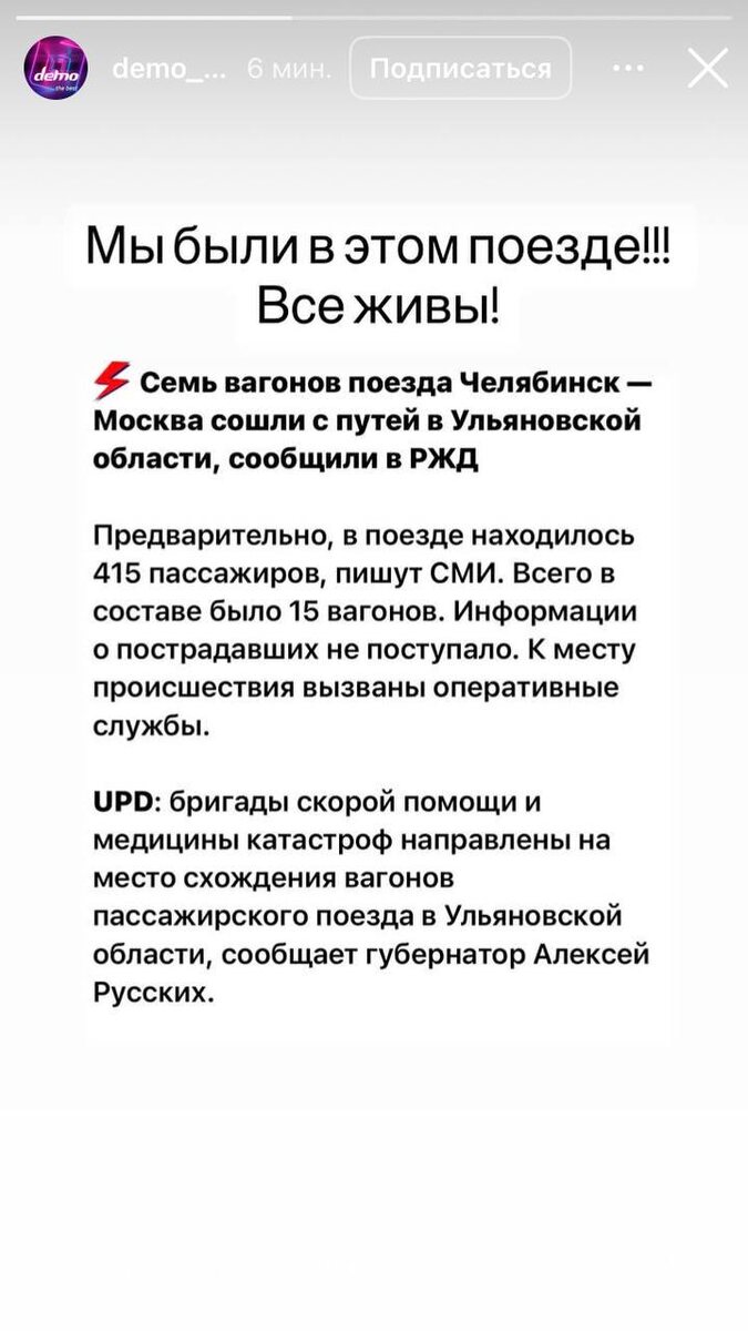 В поезде, который опрокинулся под Ульяновском, ехала группа «Демо», завтра в Челябинске концерт