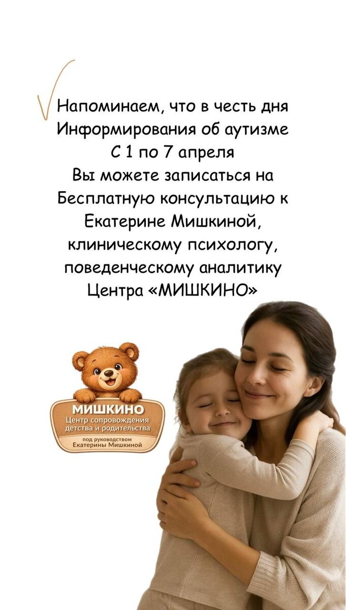 Напоминаем, что вы еще можете записаться на серию бесплатных консультаций в честь месяца информирования об аутизме