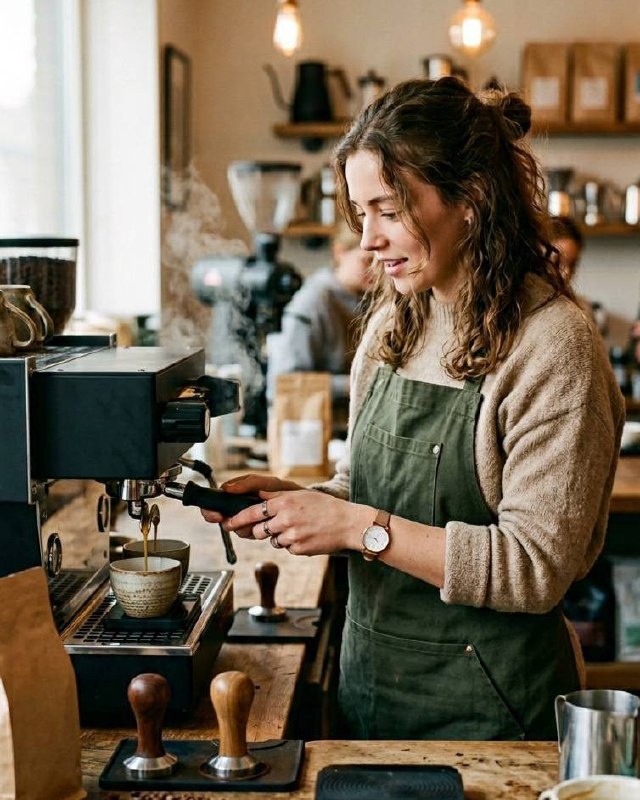 Без особых ожиданий» Так начинается почти каждая вторая история у нас. И чаще всего — так же незаметно всё и меняется. Познакомим тебя с Аней. Она работала в найме, жила по схеме «понедельник–пятница → дождаться выходных → повторить». Кофе любила. Но на уровне: «капучино с сиропом — норм». И вот в какой-то момент она пишет: «Хочу попробовать. Если не моё — хотя бы пойму». 📍Первый день. Руки трясутся. Темпер держит как гантелю 😆 Эспрессо льётся 10 секунд — и она уже думает: «Я точно не сюда пришла…» Но дальше происходит интересное. Не «мотивация». Не «поверь в себя». А очень конкретные вещи: — объяснили, ПОЧЕМУ не получается — показали, КАК исправить — дали сделать ещё раз (и ещё… и ещё) 📍Вечер того же дня. Первый нормальный эспрессо И фраза: «Подождите… он реально вкусный?» 📍День 2 Аня уже спорит о вкусе. Понимает разницу зерна. И впервые ловит кайф не от «пить кофе» — а от «делать кофе». Вот тут и происходит перелом. Не когда получается идеально, а когда становится инте