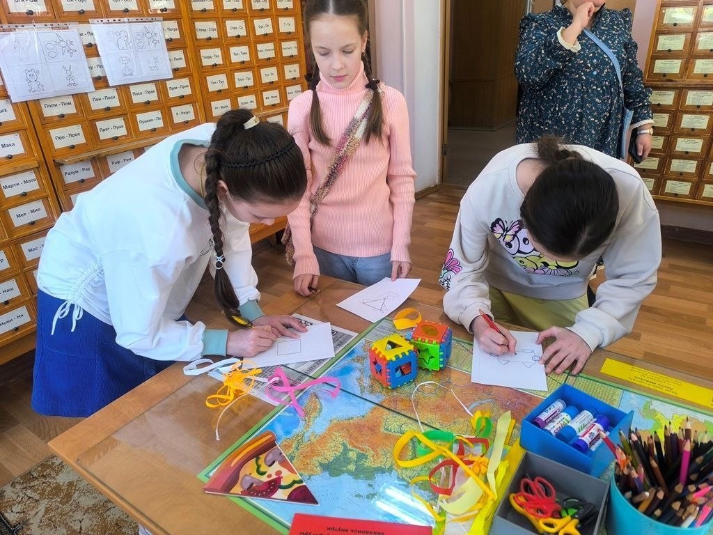 31 марта Маяковку посетили учащиеся Центра образования. Ребята решили провести весенние каникулы активно и с пользой для ума, став участниками игровой программы «Лента Мёбиуса, или Магическая математика». Мероприятие началось с экскурса в историю. Библиографы информационно‑библиографического отдела рассказали о таинственном листе Мёбиуса — его происхождении, свойствах и применении в современной жизни. Первым практическим заданием стало самостоятельное изготовление знаменитой ленты, где их ждали настоящие чудеса: кольцо превратилось в длинную перекрученную ленту. Так юные гости на практике убедились в удивительных топологических свойствах этого объекта. Далее школьникам предстояло использовать не только свои знания по математике, но и логику со смекалкой: нужно было вставить пропущенные цифры в слова, чтобы получились известные пословицы, собрать танграм и даже выполнить синхронное рисование двумя руками. Ребята успешно справились со всеми заданиями. Математика — это не скучно, а ув