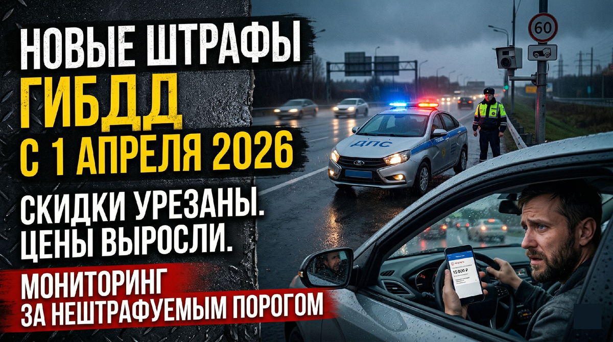 "Новые штрафы ГИБДД с 1 апреля 2026: скидки урезаны, цены выросли. Мониторинг за нештрафуемым порогом".