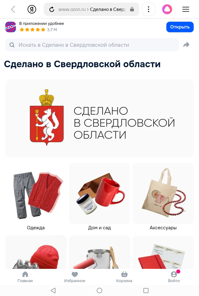 Озон – каталог – раздел «весь Озон» – раздел «Сделано в России» – выбираем регион Свердловская область