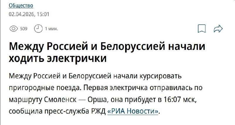 🇧🇾🇷🇺Между Россией и Беларусью начали ходить прямые электрички