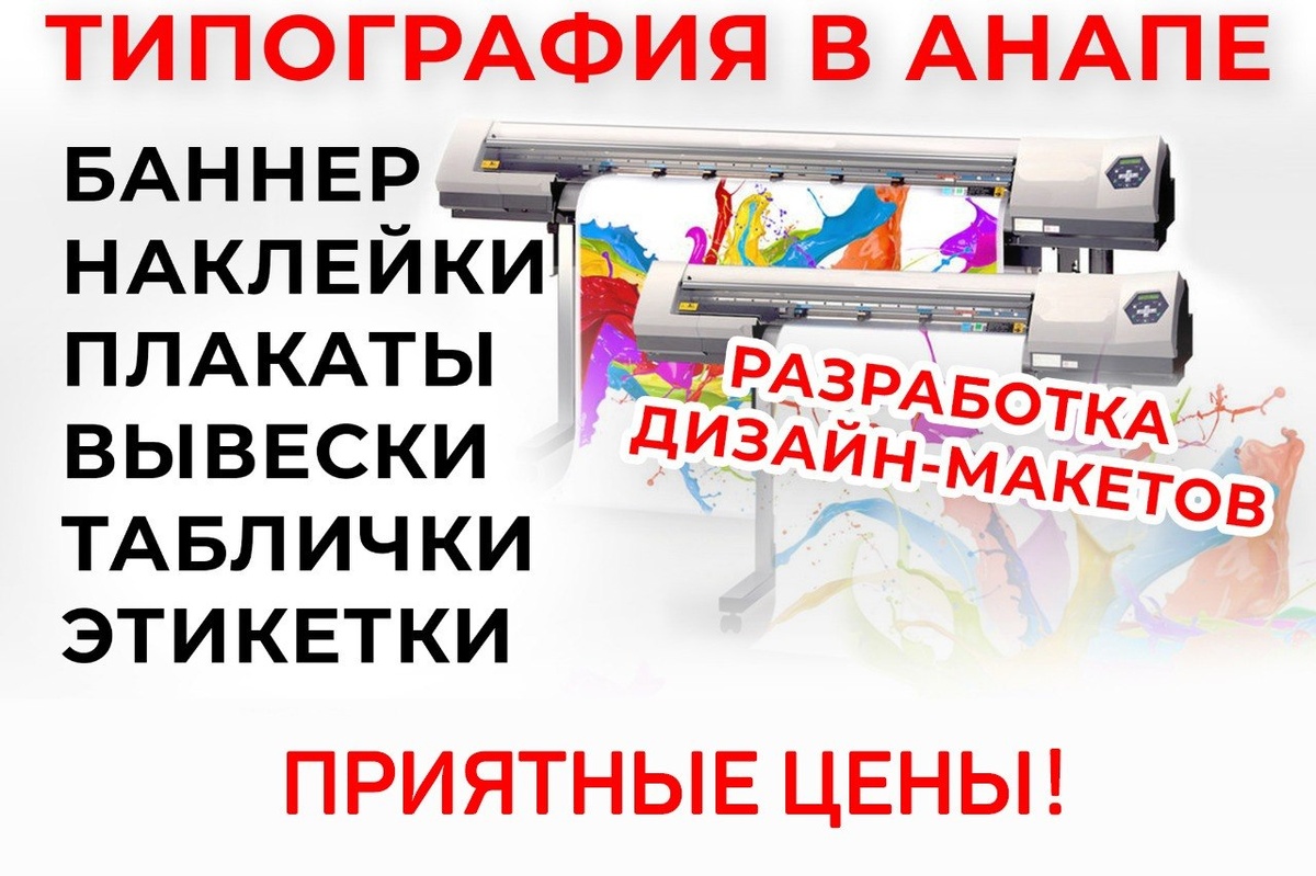 ! 🔺Баннеры, самоклеющаяся плёнка, наклейки, таблички из пластика, вывески, оформление кафе, магазинов, гостиниц...в Анапе! 🔺Визитки, флаеры, листовки, буклеты, плакаты, меню, ценники, пригласительные....в Анапе! 🔺Брендированные майки, фартуки, флаги, банданы... 🔺Дизайн! 🔺Замеры и монтаж на объекте заказчика. ❗️Скидки! 📲Обращаться по телефонам: 8-988-311-92-05, 8-900-252-99-99. #РекламаАнапа #ТипографияАнапа #ВизиткиАнапа #ФлаераАнапа #БуклетыАнапа #БаннераАнапа #НаклейкиАнапа #ВывескиАнапа #ИзготовлениеРекламыАнапа #АнапаМедиа #АнапаРеклама #ТипографияВАнапе #ИзготовлениеВывесокАнапа #ПолиграфияАнапа #ТабличкиАнапа #ПилоныАнапа #НаклейкиАнапа #БилбордыАнапа #Анапа #АнапаМедиа
