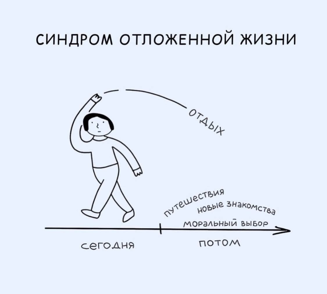 Синдром отложенной жизни выглядит примерно так: сегодня — обязанности, дела, «надо». А всё важное — отдых, желания, радость, новые впечатления — где-то там, «потом». Мы обещаем себе: ещё немного потерпеть, ещё чуть-чуть дотянуть…И тогда начнётся настоящая жизнь. Но «потом» не наступает. Оно всё время сдвигается в будущее, а жизнь проходит в режиме ожидания. Но жизнь не впереди. Она уже здесь. В сегодняшнем дне. Сейчас, в этот момент, когда вы читаете этот пост. И, возможно, не нужно ждать идеального момента, чтобы позволить себе жить чуть больше уже сейчас. ❓Что вы откладываете на «потом», хотя могли бы начать уже сегодня?