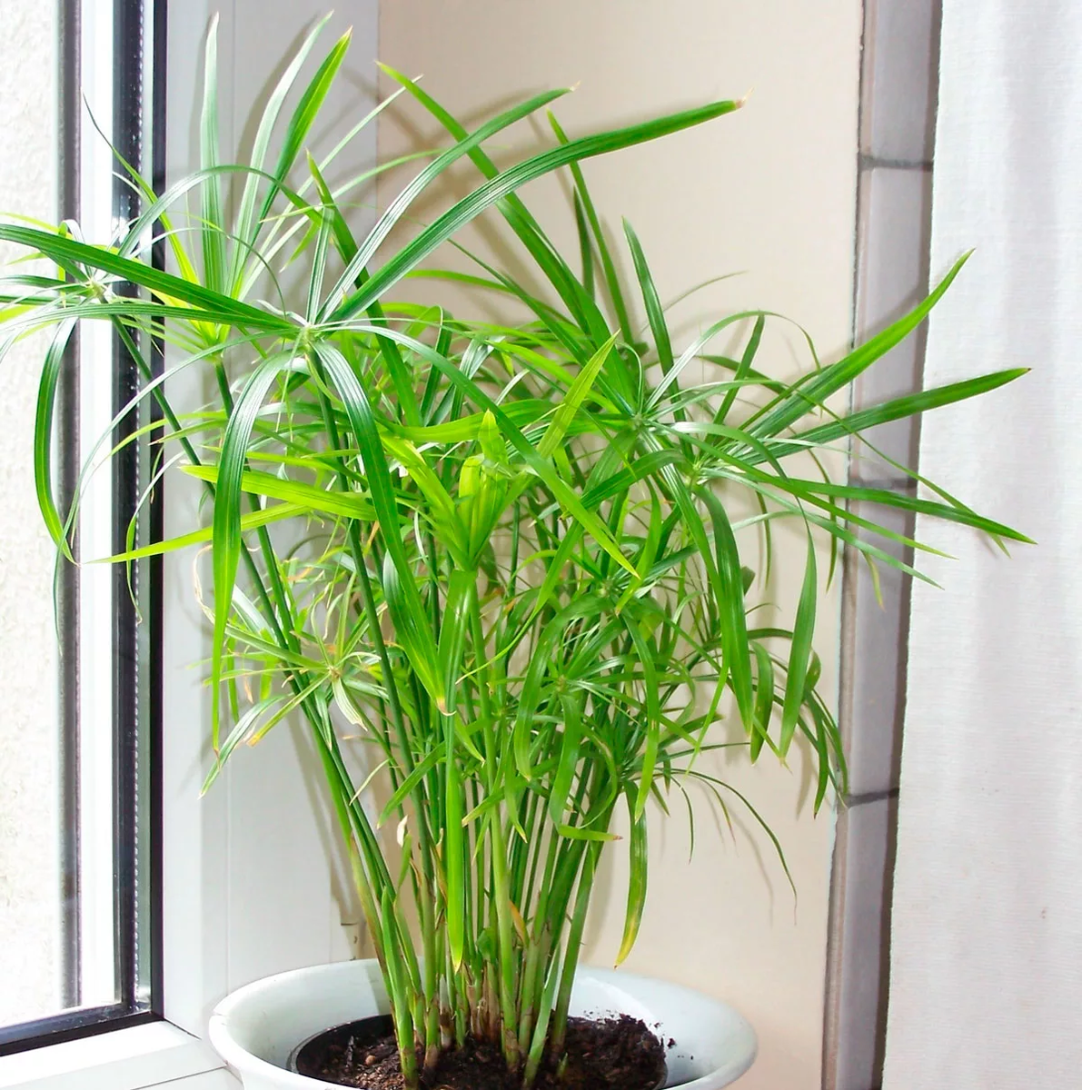Моя ошибка: Первые полгода я поливала циперус раз в неделю. Он стоял живой, но какой-то… унылый. Пока не прочитала, что в естественной среде его корни вообще всегда в воде. Я поставила горшок в поддон с водой — через три недели он выдал 8 новых зонтиков! С тех пор я не возвращалась к обычному поливу.