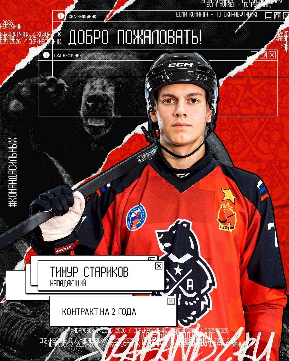 СКА-Нефтяник подписал в обойму основной команды 18-летнего воспитанника хабаровского хоккея Тимура Старикова. Контракт на два года