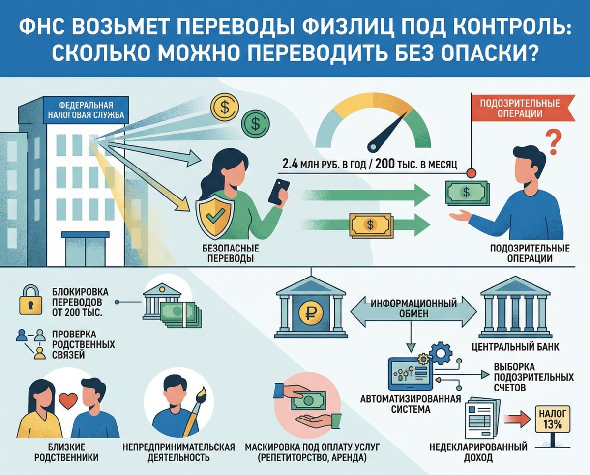 🟧 ФНС возьмет переводы физлиц под контроль: сколько можно переводить без опаски