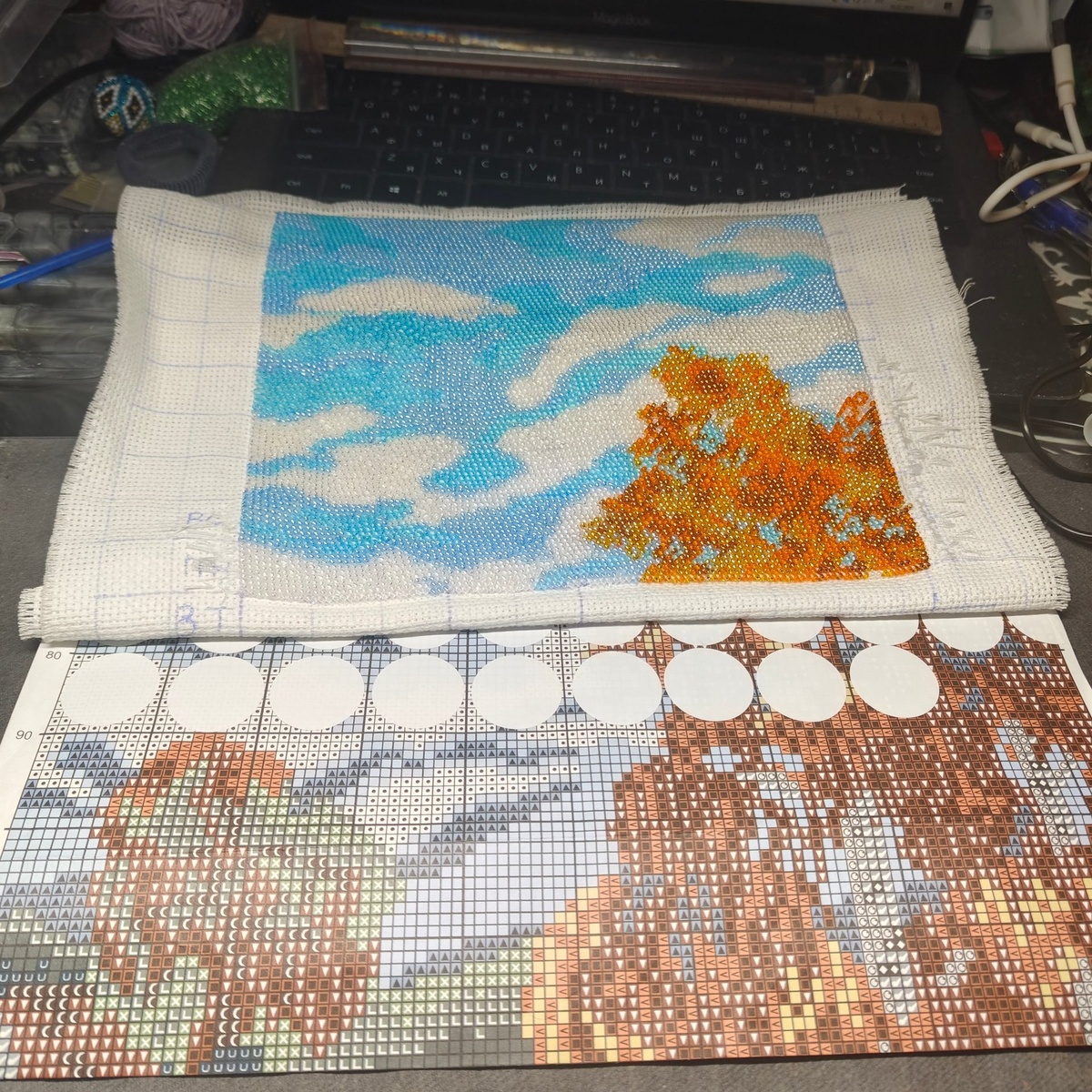 Медленно, но уверенно иду к середине — каждый новый элемент приносит радость! Бисер красиво переливается, создавая игру света и тени. Уже вижу, как рисунок оживает. Вдохновение ведёт к финишу — скоро покажу готовый результат! ✨ #творческиймир #живиярко #Ольга_ШАХ #бисер