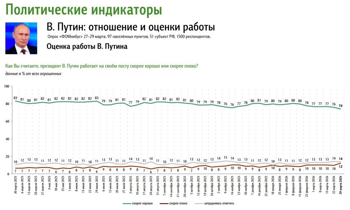 Результаты еженедельного опроса 27 – 29 марта 2026 года.