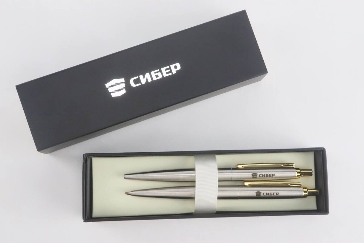 Стильные бизнес-ручки с гравировкой в элегантном брендированном футляре с тиснением для АО «Сибер»