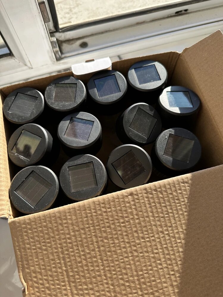 Набор из 12 светодиодных фонариков на солнечных батареях, стандарт защиты IP44. Заряжаются днем, включаются автоматически на закате.