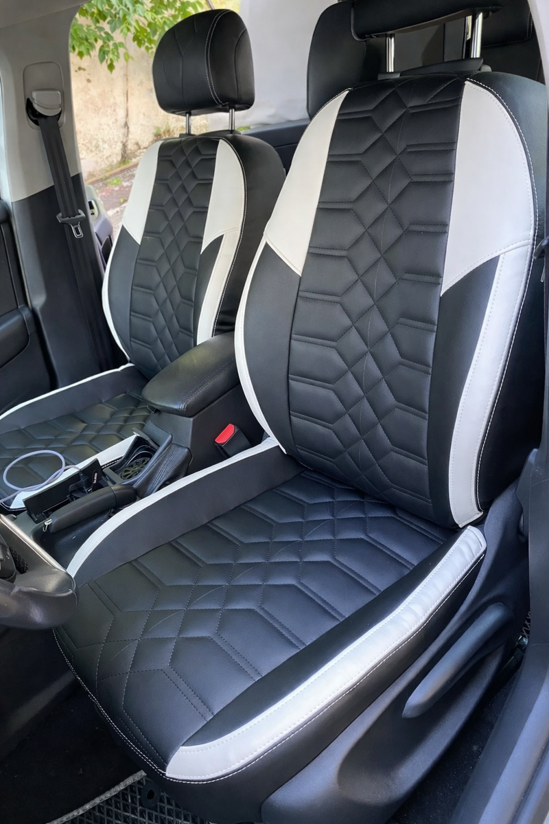 Народный выбор для Solaris. Практичная, мягкая, легко чистится. Чёрный или тёмно-серый комплект закроет все риски с загрязнениями раз и навсегда. Если у вас светлый салон — экокожа в угольно-сером или графите просто преобразит интерьер, сделав его более строгим и современным.