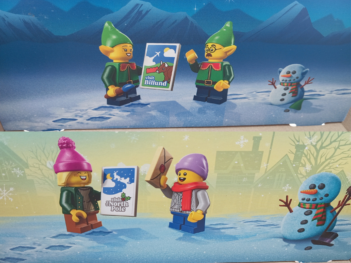А вот то самое окошко из почты, которое поставило меня в тупик из первой части. Теперь понятен механизм круговорота подарков. Дети несут письма на почту, откуда они передаются в службу доставки. Видимо, минуя магазин и мастерскую. Или же один и эльфов успевает отнести письмо в мастерскую, до того как подарки будут погружены в сани. А может все гораздо проще, и эльфы получая письма несут их на санях в мастерскую, откуда изготовленные подарки попадают в магазин, где их детям дарят? Тогда и мешок в санях наполнен конвертами, а не коробками с подарками. Это объясняет, почему сани в наборе не такие большие, как хотелось бы