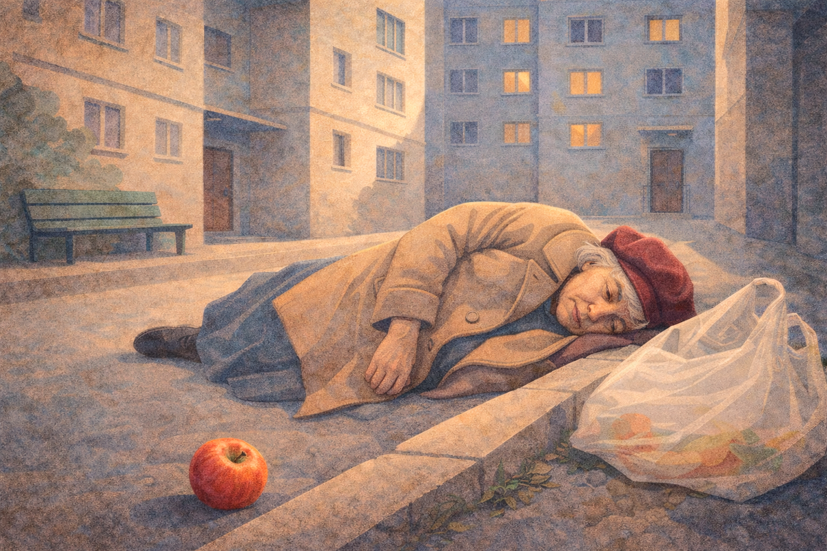 Она лежала на боку у бордюра. На вид ей было семьдесят — не больше. Пальто расстёгнуто, берет сбит на затылок. Рядом — пакет со скудным набором продуктов из самого дешёвого магазина да выкатившееся на асфальт яблоко. Правая нога была неестественно вывернута наружу, как у сломанной куклы. На удивление, женщина не кричала и смотрела лишь в одну точку, повторяя раз за разом: «Лёшенька». Соседка, вызвавшая нас, говорила быстро и сбивчиво, мол, шла из магазина, сумку рванули, толкнули, она упала. – А кто это был? – Парень в капюшоне. Убежал через арку. Я подошёл и посмотрел. Стопа больной ноги была ротирована наружу, а сама конечность укорочена. Ну, тут классика — шейка бедра. Давление — 190/110, пульс — 102, что неудивительно. Женщина в шоке, поэтому не чувствует боли. Несмотря на это, вводим обезболивающее, а после накладываем шину. Из подъезда напротив вышли двое мужчин в годах. – Дайте ей валерьянки, чего стоите! Второй: – Ногу надо выпрямить, я в армии видел… Попросил их отойти. – Може