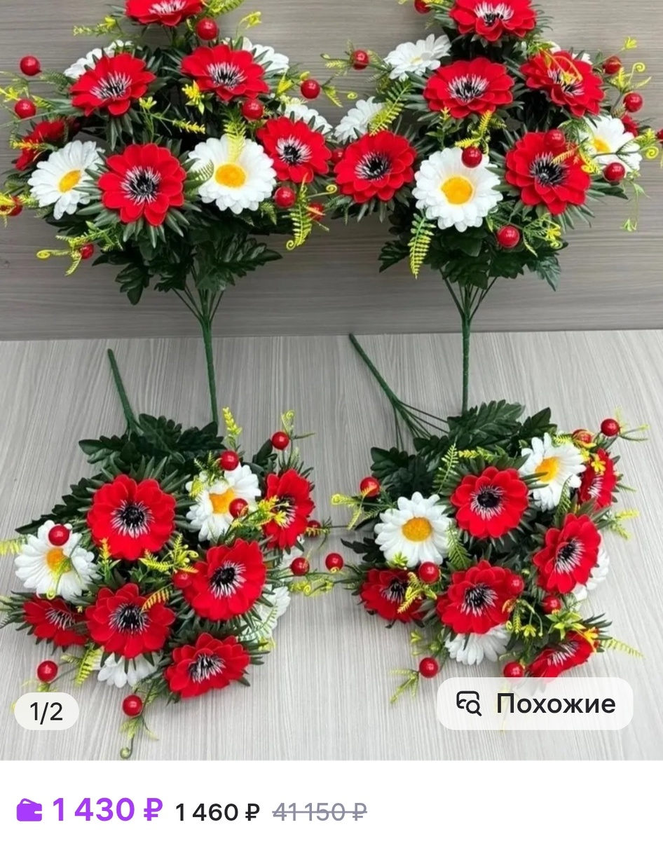Заказали искусственные цветы оптом на сумму 9300. Это нам привезла женщина, которая занимается оптовыми закупками. Получилось очень выгодно, например, цена такого букета на маркетплейсах от 300 рублей.