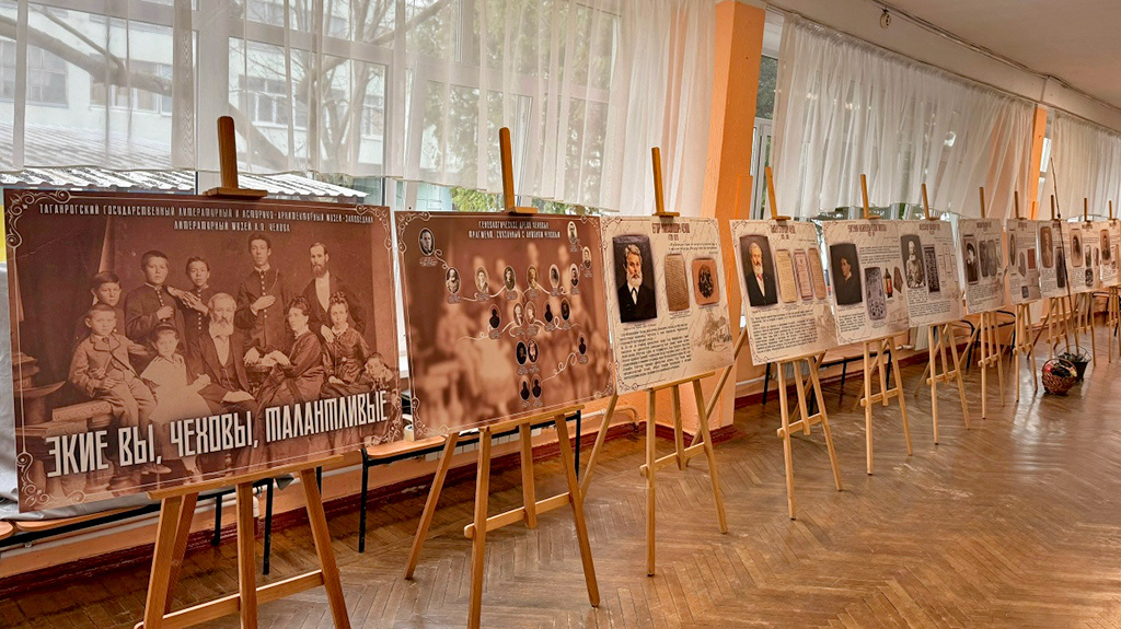 Проект Таганрогского музея-заповедника «Экие вы, Чеховы, талантливые» продолжит выезды в учреждения города. В таганрогской школе №35 открылась передвижная выставка, посвященная семье Антона Павловича Чехова. Мероприятие позволило ученикам ближе познакомиться с творческим наследием и историей их знаменитого земляка. Научные сотрудники Южно-Российского научно-культурного центра А.П. Чехова Анастасия Симукова и Екатерина Данильченко представили школьникам проект Таганрогского музея-заповедника «Экие вы, Чеховы, талантливые». Знакомство с одной из самых необычных семей в истории русской литературы началось со слов: «Талант в нас со стороны отца, а душа – со стороны матери». В ходе осмотра выставки дети узнали не только о жизни и творчестве великого писателя, но и о его окружении – большой семье, где каждый был по-своему одарен. История рода, от деда писателя Егора Михайловича, выкупившего семью из крепостной зависимости, до младшего брата Михаила – издателя первого детского журнала «Золото