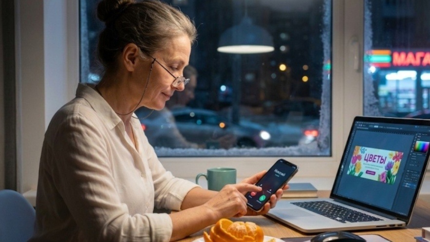 Экран ноутбука уютно светился в полумраке, отображая макет нового рекламного баннера для цветочного магазина, над которым я кропотливо работала последние два часа. Я подвигала слои, поправила кернинг в заголовке, сохранила файл.
