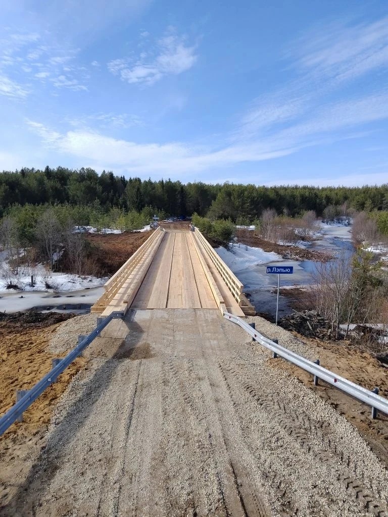 В Койгородском районе практически завершен ремонт моста через реку Лэпью, расположенного на дороге Койгородок – Нючпас. Работы на объекте позволили восстановить важный транспортный участок, который ранее находился в аварийном состоянии и не соответствовал нормам грузоподъемности. Ремонт моста выполняла компания ООО «СеверРегионСтрой». Специалисты произвели полный демонтаж старых деревянных конструкций, установили новые пролетные строения, заменили элементы опор и переустроили сопряжения моста с подходами. Для безопасности движения смонтировано новое барьерное ограждение. Строительно-монтажные работы на мосту полностью завершены, движение транспортных средств открыто. Подрядчик приводит строительную площадку в надлежащий вид и убирает строительный мусор. Ход ремонта находился на постоянном контроле руководителя региона. Во время одного из визитов на объект Глава Республики Коми Ростислав Гольдштейн поручил завершить все работы в установленные сроки. Он неоднократно подчеркивал, что каче