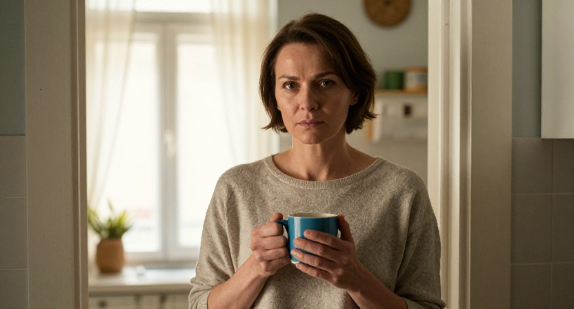 Она убрала со стола кружки, оставив одну разводящую лужицу на деревянной поверхности. Посмотрела на неё. Вытерла — не потому что боялась, а просто потому что захотела. Потому что это был её стол, и она сама решала, когда за ним убирать.