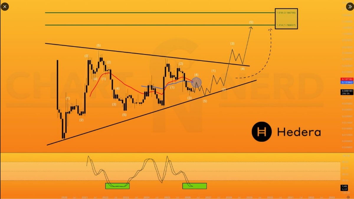 ? Партнерство McLaren Racing с Hedera привлекло внимание к HBAR, который торгуется около $0.08. Несмотря на рост на 1.40% за 24 часа, недельное падение на 6% оставляет картину смешанной. Снижение объема торгов на 15% до $87 млн указывает на замедление краткосрочной активности, но цена удерживается в ключевом диапазоне. 📊 Ключевые моменты: - 🏎️ McLaren Racing присоединилась к управляющему совету Hedera, что может дать сети новый импульс. - 📈 Технический анализ указывает на фигуру "сходящийся треугольник", предвещающую сильное движение. - 🎯 Аналитик ChartNerd прогнозирует потенциальную цель в $1.80 при пробое сопротивления. - 📉 Объем торгов HBAR за последние 24 часа снизился на 15%. - 🤝 McLaren планирует использовать Hedera для цифрового взаимодействия с фанатами и выпуска блокчейн-коллекционных предметов.