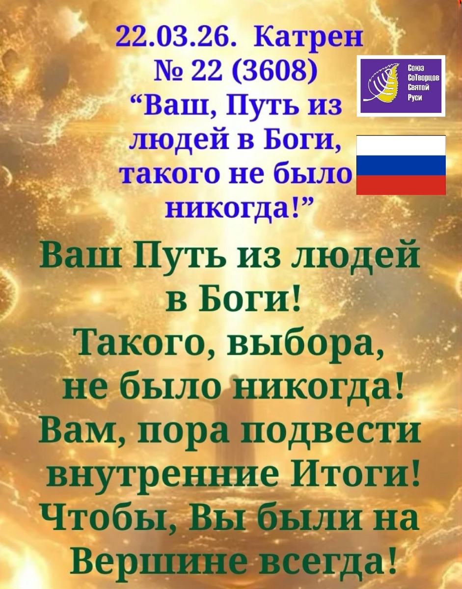 22.03.26. Катрен№ 22 (3608) “Ваш, Путь из людей в Боги, такого не было никогда!”