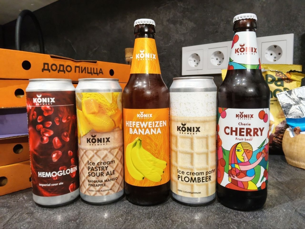 🤩Спустя 22 обзора Батя наконец так плотно подошел к самому натуральному экспериментальному крафту. 🍌Конечно, их броский внешний вид вызывал слюнотечение уже давненько, там тебе и вишенка и мороженка и бананчик, мммм. Но мы же пива хотим попить, не? Именно поэтому я очень осторожно подходил к такому обзору. 🍒В итоге были отобраны именно фруктово-ягодно сладкие варианты от Konix для дегустации. Сразу оговорюсь, итоговый балл строился на основе оценок 4 сомелье. А еще в этот раз имеется оценка от внеконкурсного питерского сомелье, который отметился радикальным подходом к оценке. Итак, сегодняшние красавцы: 🍺Hemoglobin 🍺Ice cream pastry Sour Ale 🍺Hefeweizen Banana 🍺Ice cream porter Plombeer 🍺Cherie Cherry *Оценка в скобках от Питерского внеконкурсного сомелье* И по запаху и по вкусу тупо Тутти Фрутти. Фанаты Хуббы Буббы или Малабара, сюдааа. Сладкий пивной напиток с ароматизаторами и глюкозным сиропом. Ничего другого вы не ощутите кроме того, что вы сейчас прочитали. Хефевайцен - э