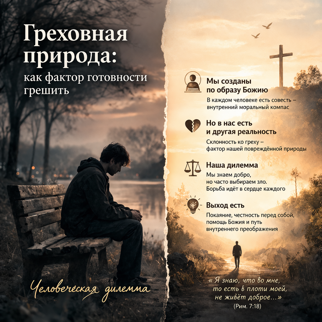 Он способен восхищаться добром, жертвовать собой, сострадать, искать Бога. С другой стороны, этот же человек может завидовать, раздражаться, лгать, мстить, предавать, уходить от ответственности, оправдывать собственную жестокость или слабость. И часто это происходит не потому, что он ничего не знает о добре, а потому что внутри него есть эта готовность к