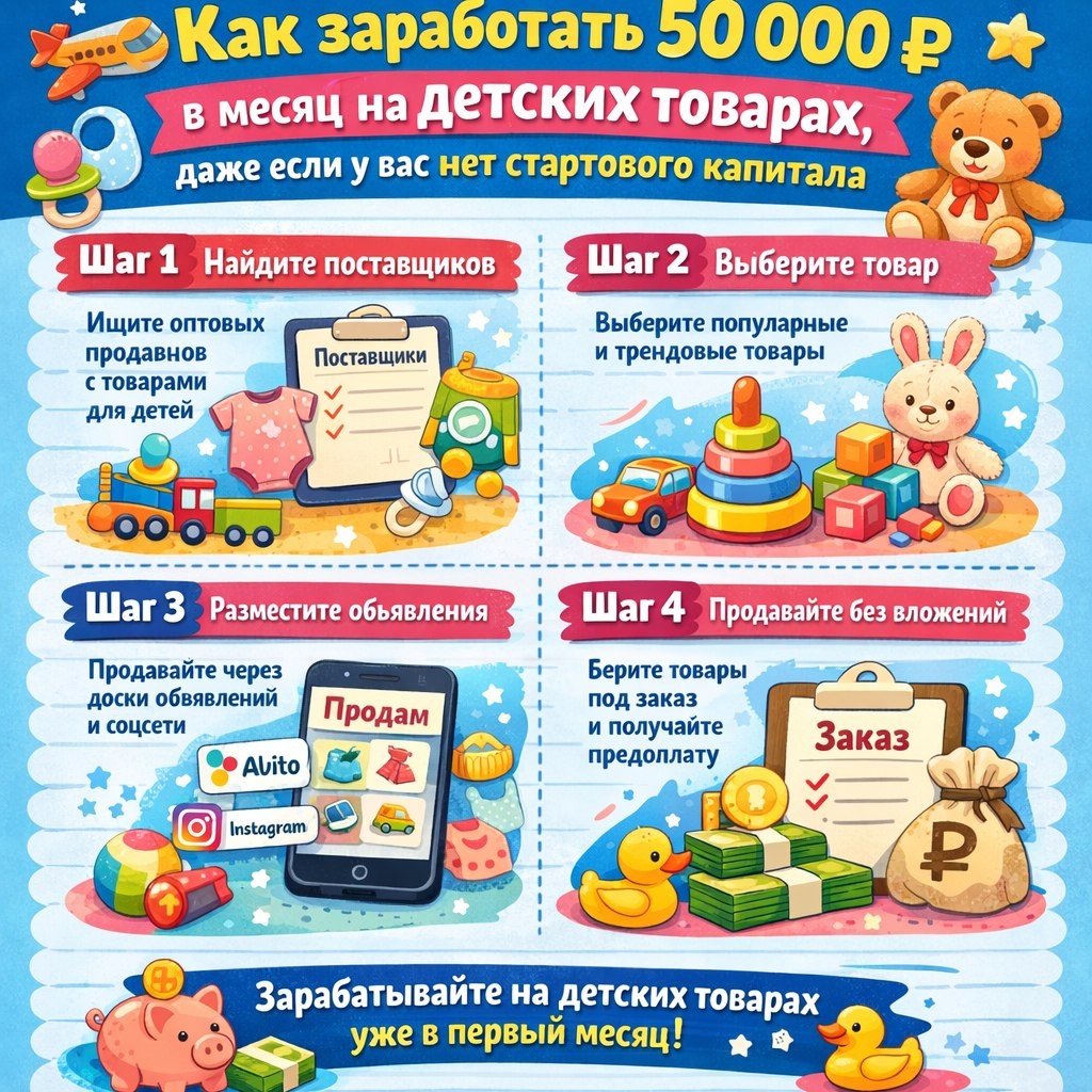 Но в 2026 году можно зарабатывать на детских товарах — без склада, без риска и без первоначальных вложений.