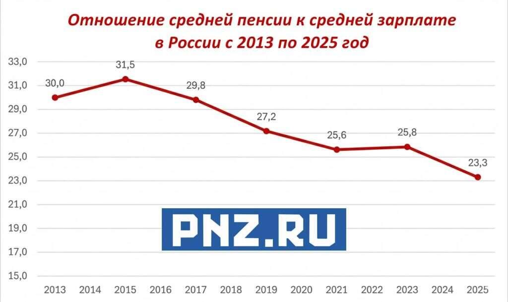 Даже регулярная индексация пенсий не успевает за инфляцией и ростом заработных плат. Коэффициент утраченного заработка продолжает снижаться. В 2025 году он опустился ниже отметки в 25%, что фактически отражает стремительное падение покупательной способности пенсионных выплат.
