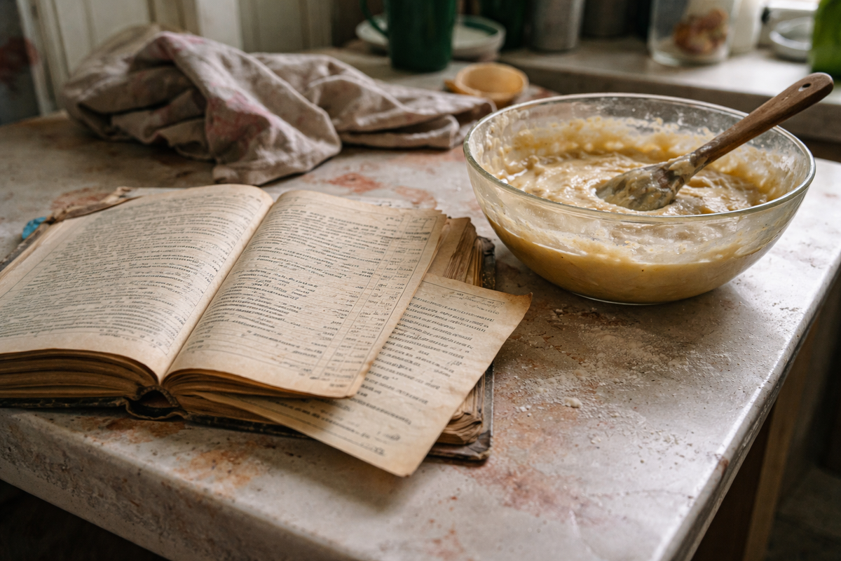 Кухня была теплая, маленькая, февраль за окном серый, подоконник холодный. Я пришла разобрать её вещи уже третий раз, и каждый раз находилось что-то еще. То пуговицы в банке, то старые фотографии, где не поймешь, кто есть кто, то вот эта книга — толстая, в клеенчатой обложке, с надписью от руки: «Рецепты». Я и открыла-то её потому, что муж просил найти тот самый торт с маком, который его мать пекла на все праздники. Говорил: «Посмотри, может, там записано. У неё всё было записано».