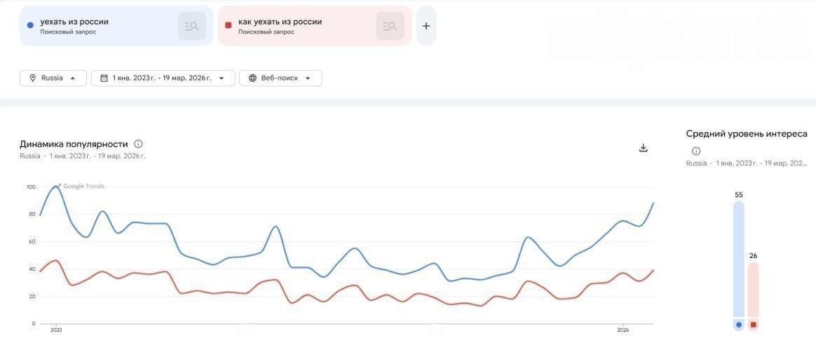 Секретный контур" о том, что интернет-блокировками и прочими непопулярными решениями государство добивает российскую демографию: Государство своими решениями — административным произволом, запретами, блокировками, беспардонным проникновением в частную жизнь, ликвидацией института частной собственности — наносит сокрушительный удар по и без того вымирающей демографии. Вместо того чтобы создавать безопасную, предсказуемую среду, власть выстраивает систему, деторождение в которой выглядит крайне непривлекательной идеей и естественной реакцией общества становится уход в режим выживания, отказ от воспроизводства, а то и вовсе исход, что красноречиво демонстрирует нам статистика запросов в поисковиках. Уже сейчас суммарный коэффициент рождаемости в России опустился до 1.2. И это с нацреспубликами, в русских областях всё ещё хуже. Это означает, что каждое следующее поколение будет примерно на 50% малочисленнее нынешнего. Некому будет рожать, некому будет содержать и защищать государство. О