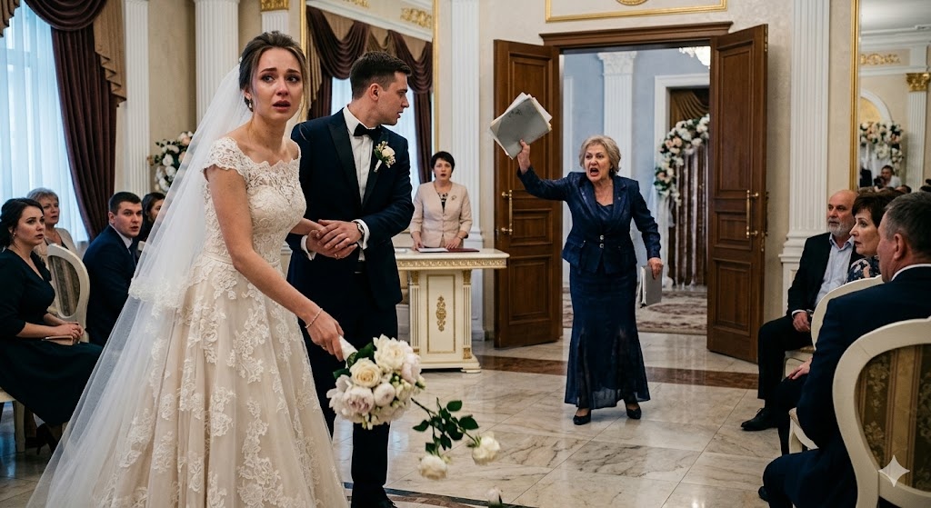 Внезапный грохот выбил тишину из зала. Дубовые створки распахнулись, ударившись о стены. Музыка захлебнулась. В проеме, тяжело дыша, стояла Тамара Игоревна, мать жениха. Ее парадный костюм был помят, лицо пылало гневом, а в кулаке она сжимала серую папку, словно заряженный пистолет.