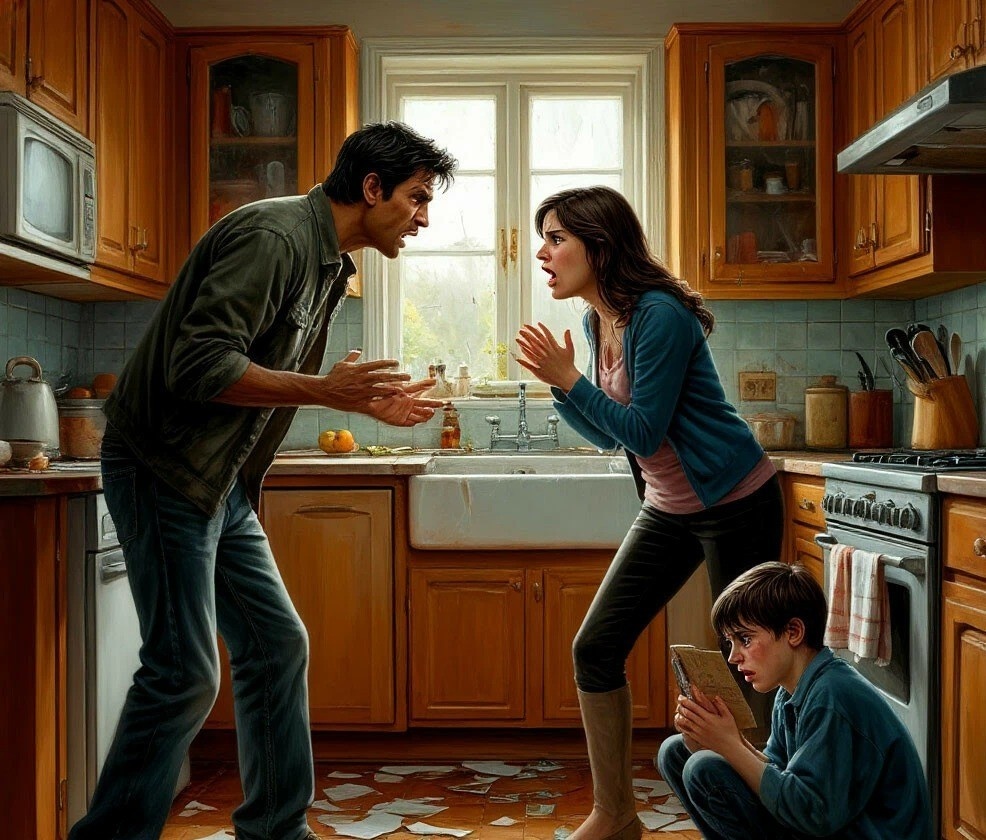 Уже накинув пальто, Кротов не выдержал, скосил глаза в сторону кухни. Таня ползала под столом, собирая осколки, а всеми позабытый сын застыл, сжимая в мокрых от слёз пальцах дневник с двойками. Случайно встретившись с отцом взглядом, он тут же сгорбился, сморщился.