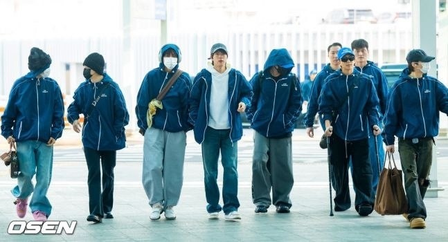 Пока весь мир осваивает плавающие движения SWIM- бантан, больше похожие на олимпийскую сборную по плаванию(в случае Наму-параолимпийскую) выдвинулась с менеджерами и стаффом в Америку... По давно имеющимся сведениям они дадут интервью Джимми Феллону, который, как мне кажется, очень тепло относится к легендарной семёрке... В очередной раз восхищаюсь продуманностью каждого хода HYBE, БШХ и БТС!! Как это символично-одеть всю команду в едином стиле и одинаковые олимпийки- показать своё единомыслие, сплоченность, монолитность!! Обычно мгновенно проносящийся по аэропорту Шуга, придержал шаг, чтобы контролировать перемещение Лидера... Блин-снова выучка айдольская- ведь можно было просто взять коляску, и покатили!! НЕТ! Идёт в гипсовом сапожке, опираясь на две подставки... Видно, что тяжело-непривычно, неудобно, временами больно... ШОТУШ ТАК НЕВЕЗЕТ!! А пока можно посмотреть интервью ребят известному новозеландскому радиоведущему и креативному директору Apple Music 1, Зейну Лоу...Замечу, кста