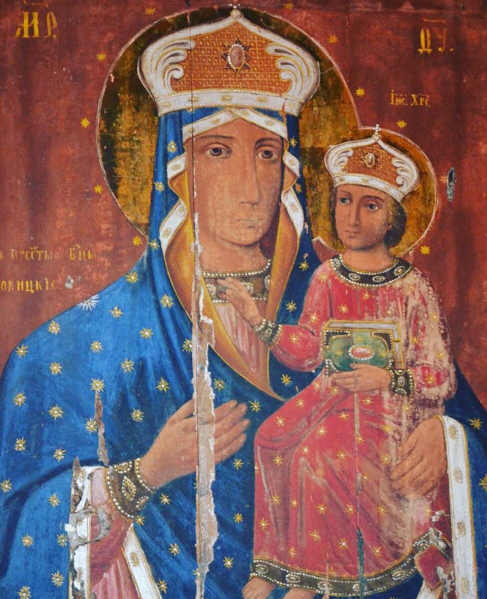 Дубовичской иконы Пресвятой Богородицы. Название образа связано с селом Дубовичи, которое ранее входило в состав Черниговской губернии. Здесь этот образ известен с XVI века. Согласно преданию в первой половине XVI века икону обрели в зарослях травы на берегу реки Рети. Предположительно её случайно обронил военный обоз, перевозивший церковную утварь. Местный пастух, прогоняя стадо, нечаянно задел кнутом лежащую в траве икону Богоматери. В тот же миг от образа воссиял необыкновенный свет, который ослепил пастуха — он без чувств упал на землю. В таком состоянии его обнаружили и отнесли к священнику. Очнувшись, пастух рассказал о случившемся. Священник вместе с прихожанами отправился на указанное место, где и нашёл святой образ, скрытый в траве. Усердием верующих на месте явления вскоре построили часовню, в которой и поместили обретённую икону Богородицы. Спустя некоторое время образ перенесли в Архангельскую церковь села Дубовичи. С тех пор от иконы стали совершаться многочисленные чу
