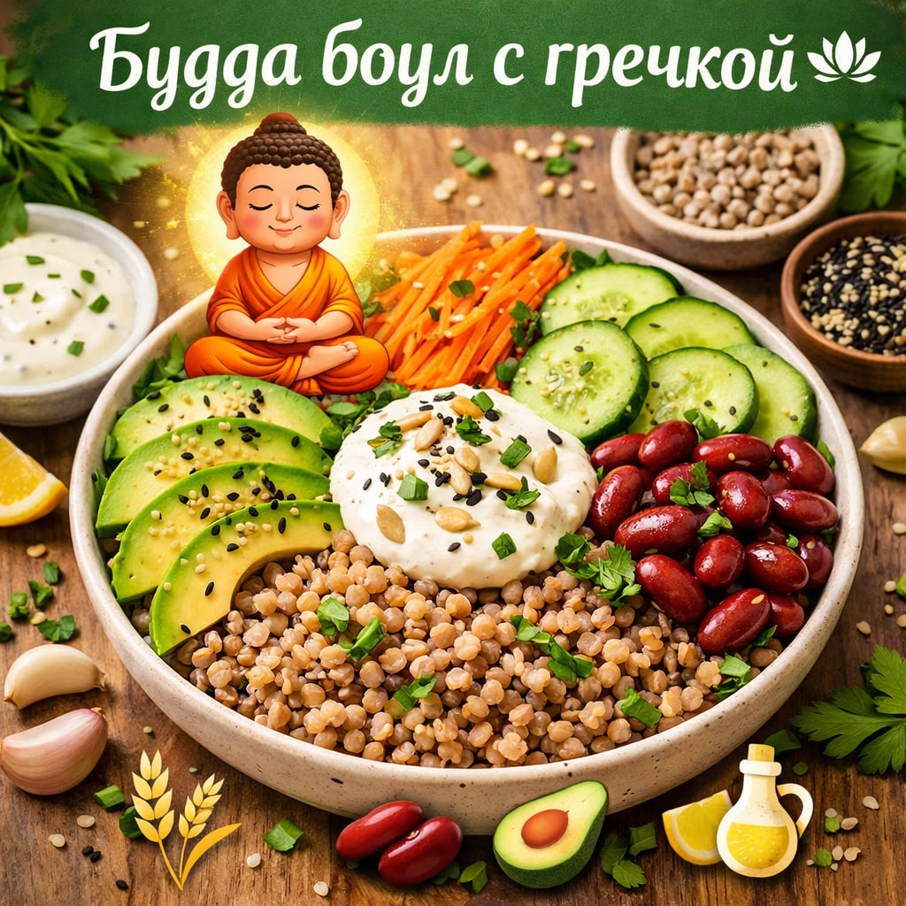 Йога учит внимательности и заботе о себе, и питание — не исключение. Будда боул — это не просто еда, а маленькая медитация на тарелке: ✨ Цельнозерновые: киноа, булгур или рис — дают долгую энергию. ✨ Свежие и запечённые овощи — витамины, цвета и вкус. ✨ Белок: нут, фасоль, тофу — поддержка мышц и спокойствия. ✨ Полезные жиры: орехи, семена, авокадо — мягкость и насыщение. ✨ Заправки на основе йогурта, тахини или лимона — лёгкость и гармония вкуса. Каждая ложка — как маленький ритуал заботы о себе. 🍃 Сегодня подготовили для Вас рецепт Будда боул с гречкой Ингредиенты (на 1 порцию): 🍚 Основа: 100–120 г отварной гречки (можно взять зелёную или ядрицу — на ваш вкус) 🥕 Овощи: морковь (свежая натёртая или запечённая с маслом и специями) огурец свежий — нарезать кружочками или соломкой авокадо (если доступен) или цукини (запечённый или сырой) 🌱 Белок: красная фасоль (консервированная или отварная) — 3–4 ст. ложки 💪 Полезные добавки: семечки подсолнечника или тыквенные, кунжут (чёрный ил