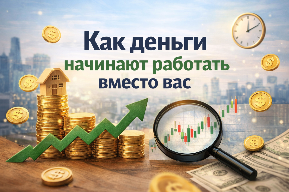 Эта фраза не означает, что можно вообще ничего не делать и сразу разбогатеть. Она означает другое: вам не нужно каждый раз заново зарабатывать весь результат только своим трудом. Часть денег начинает создавать доход сама — через выбранный вами инструмент.