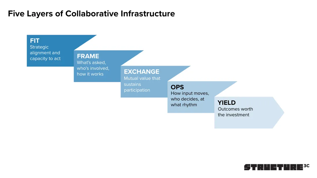 Инфраструктура — это другое. Это инвестиция в способность выстраивать отношения, которая со временем накапливает ценность. Связи между участниками и организаторами укрепляются. Институциональная память углубляется. Вопрос меняется с «какие идеи мы можем получить?» на «какая инновации, которые мы не смогли бы внедрить в одиночку, становится реальными благодаря этим отношениям?»