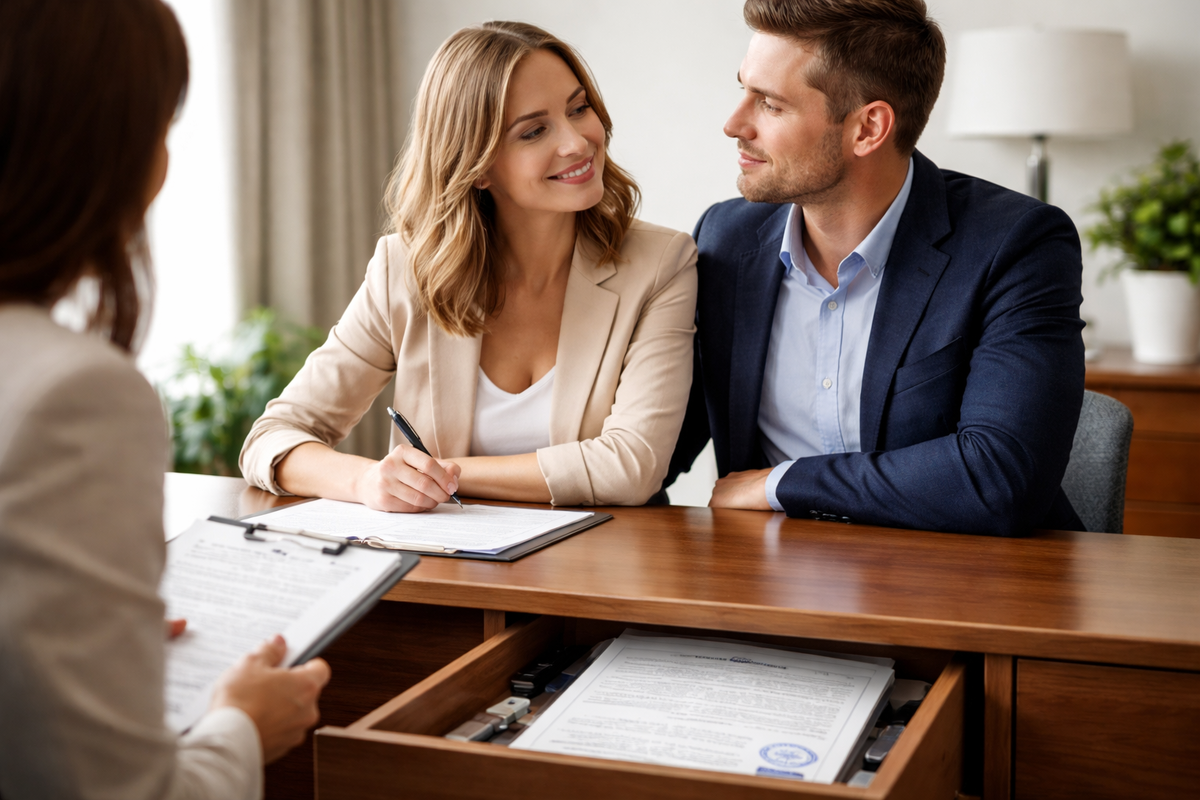 В кабинете нотариуса было слишком тепло. Лаковый стол блестел так, будто его только что протёрли влажной салфеткой. На столе лежала синяя папка, её паспорт, предварительный договор и ручка с тяжёлым серебристым колпачком. Борис сидел рядом, чуть подавшись вперёд, и отвечал быстрее, чем его спрашивали.