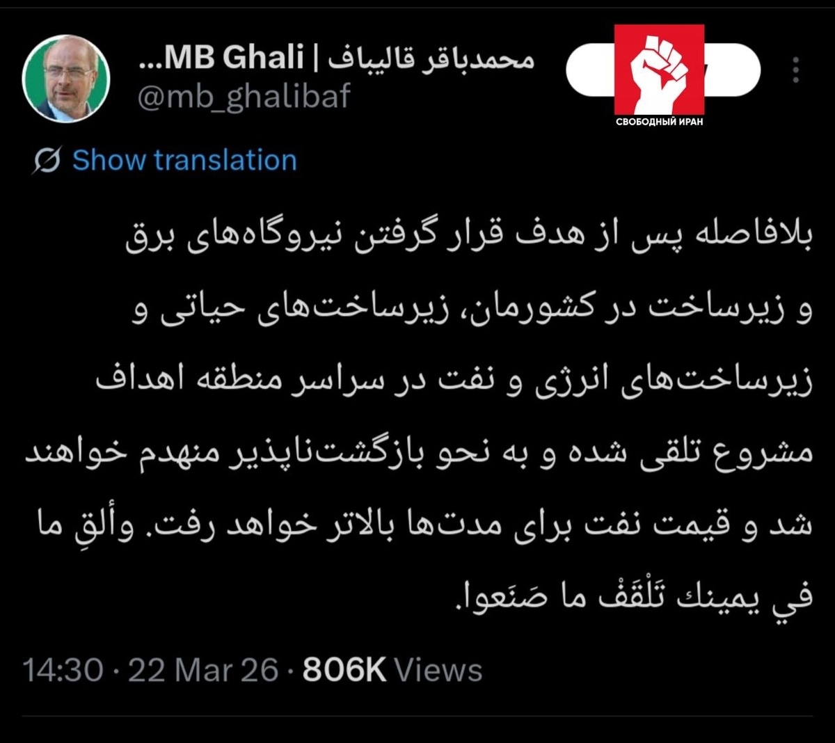 🇮🇷🇺🇸 Галибаф предупредил о ответе 🚀💥