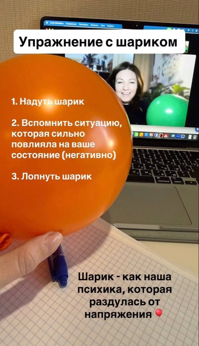 ) Один из интересных моментов моего двухдневного обучения 🎓 Описала для вас в краткой форме❤️ Если вы чувствуете напряжение, какую-то неопрелеленность или обиду на кого-то - сделайте упражнение ☑️ Перед тем, как лопнуть шарик: 🔤Подумайте о ситуации/человеке 🔤Почувствуйте это напряжение через надавливание на него 🔤 Вспомните все моменты и мысли связанные с тревожащей ситуацией ❤️ Я написала на шарике основные моменты ✔️ И лопните его острым предметом.