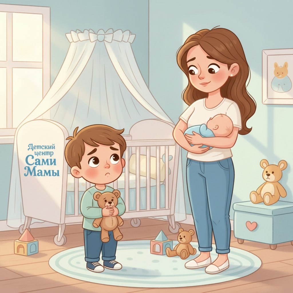 Когда ребёнок ревнует - вместо того чтобы объяснять или уговаривать, попробуйте просто сесть рядом и сказать: "Иди ко мне". Без слов про то, что ревновать не надо. Без объяснений, почему вы держали куклу или другого ребёнка. Просто физический контакт - объятие, колени, рука на плече. Тело успокаивается быстрее, чем слова доходят до сознания. Особенно у детей до трёх лет.