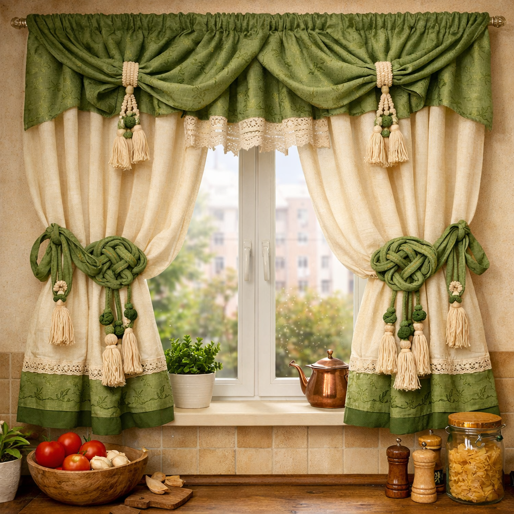 Однажды моя невестка спонсор всех подкладов , любительница ходить по бабкам - сшила маме красивые кухонные шторы.