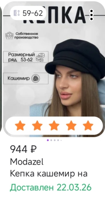 Сегодня получила в пункте выдачи ещё одну кепку, специально заказала большой размер, чтобы она была объёмной. У меня размер головы 56, а кепка аж 59-62! Но она такой огромной не смотрится, а вот объёмной - да. Видимо, чтобы на мне хорошо сидели кепи, их надо брать на несколько размеров больше.