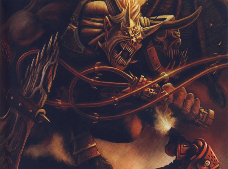 Кхорн Жаждущий Крови В Имматериуме Ка'Бандха (англ. Ka'Bandha) — Жаждущий Крови, которого считают самым могучим из всех служителей Кхорна. Наиболее известен своим противостоянием с примархом Сангвинием и его легионом Кровавых Ангелов. Впервые Империум встретился с Ка'Бандхой во время Битвы за Сигнус Прайм, куда он был призван из Имматериума жертвой астропата Несущих Слово Корокоро Сахза, и где он вместе с Хранителем Секретов Кириссом Порочным возглавлял войска демонов, сражавшиеся с Кровавыми Ангелами. Во время сражения Ка'Бандха вступил в воздушный бой с Сангвинием, сломал ноги примарху и высвободил дремлющую в воинах легиона Кровавую Жажду. После того как Сангвиний благодаря помощи своих Кровавых Ангелов восстановился, он повторно сразился с Ка'Бандхой и изгнал его обратно в варп. Говорят, что Ка'Бандха также может быть причиной Черной Ярости, и по сей день являющейся проклятием Кровавых Ангелов и их орденов-наследников. Во время Битвы за Терру, демон опять встал на пути Кровавых Анг