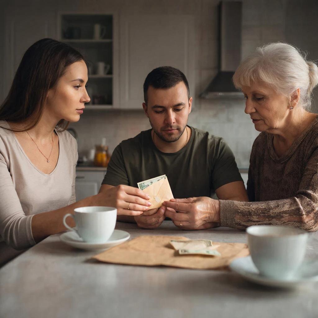 Потом пришла свекровь. Увидела, что я молчу, спросила напрямую. Я сказала правду — не выдержала. Она посмотрела на сына, потом на меня, и сказала: «Валера, ты дурак. Хороший сын, но дурак. Деньги жены — это святое». Она привезла 15000 вечером. В конверте. Я отказалась. Она настаивала. Мы пили чай втроём, и вдруг разговорился Валера. Оказалось — он стыдился сказать мне, что мама просила помощи. Стыдился признаться, что нам самим туго. Стыдился показаться сыном, который не может купить маме телевизор без женской зарплаты.