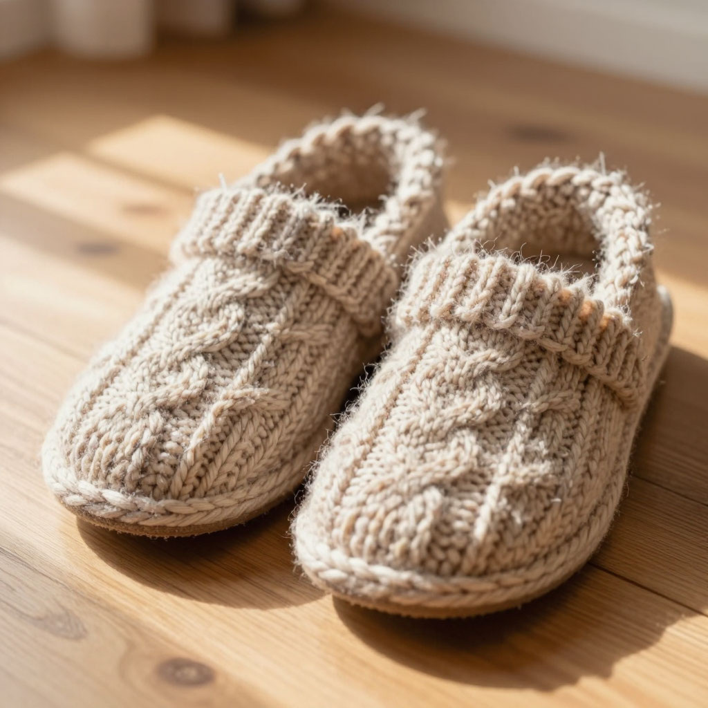 * Для зимней версии добавьте **подкладку из флиса** или шерсти, пришив её к подошве перед креплением верхней части.