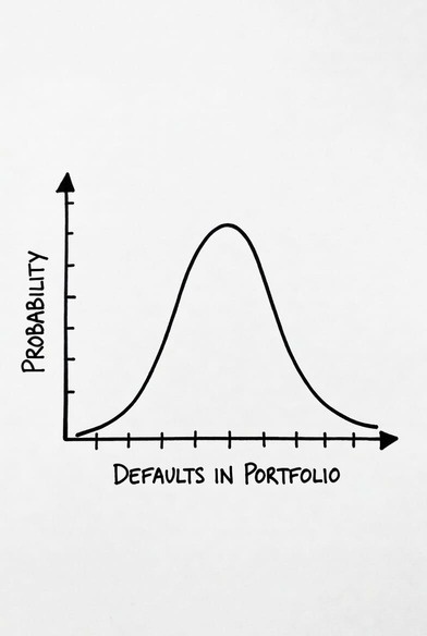 Он вспоминает теорию вероятности: для таких задач есть биномиальное распределение. И быстро обнаруживает, что классическая формула Бернулли работает только при условии, что вероятность дефолта одинакова для всех облигаций.